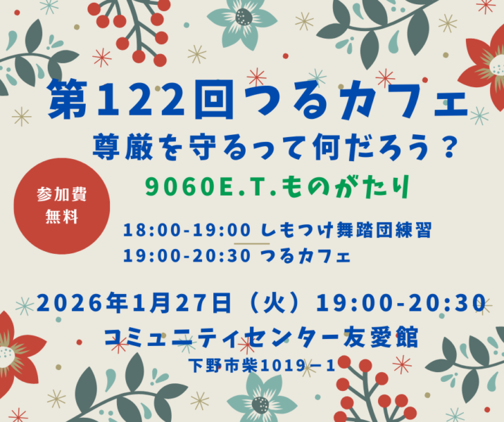2026/1/22 第122回、つるカフェ開店! 寒波の居座りは困りますよ〜の2026年冬 第122回つるカフェのご案内になります 日時:2026年1月27日(火)19時~20時30分 場所:下野市コミュニティーセンター友愛館 参加費:無料 ZOOMなし対面のみ 2月11日(水・祝)のビックイベント 第30回在宅ケアネットワークとちぎ 第4回在宅医療推進フォーラムin 栃木 予習をしながら、後半の即興劇カンファレンスを体験いただきます 在宅ケアに関わる専門職だけでなく、市民の方の参加も歓迎します もちろん下野市民だけでなく、小山市民も、栃木市民も、宇都宮市民も、上三川町民も、栃木県民でなくでも、つまり、誰でも歓迎です!